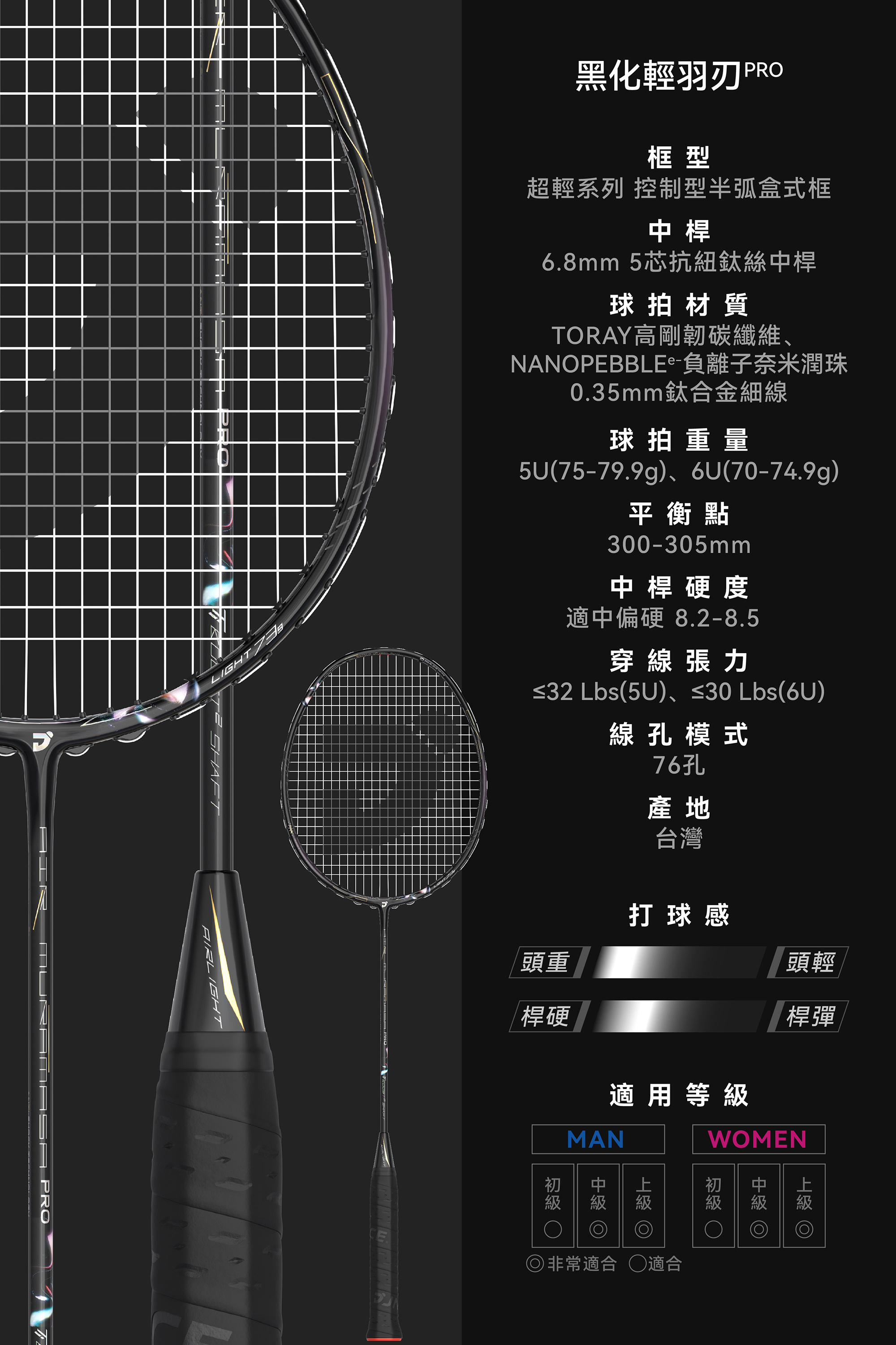 【選手級】【一年保固】黑羽刃PRO/ AIR MURAMASA PRO 羽球拍 (5U/6U)