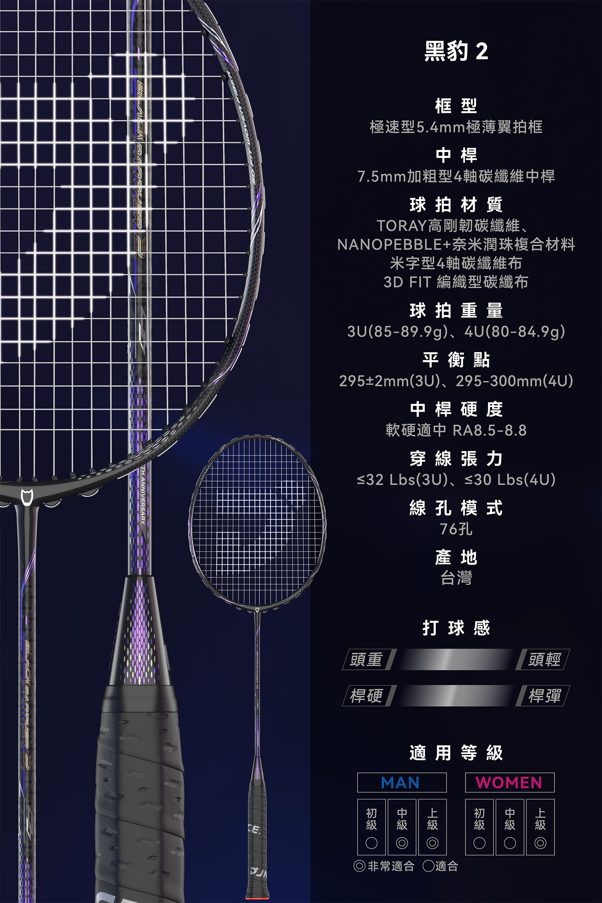 【選手級】【一年保固】黑豹2 / BLACK PANTHER 2 羽球拍 (3U/4U)