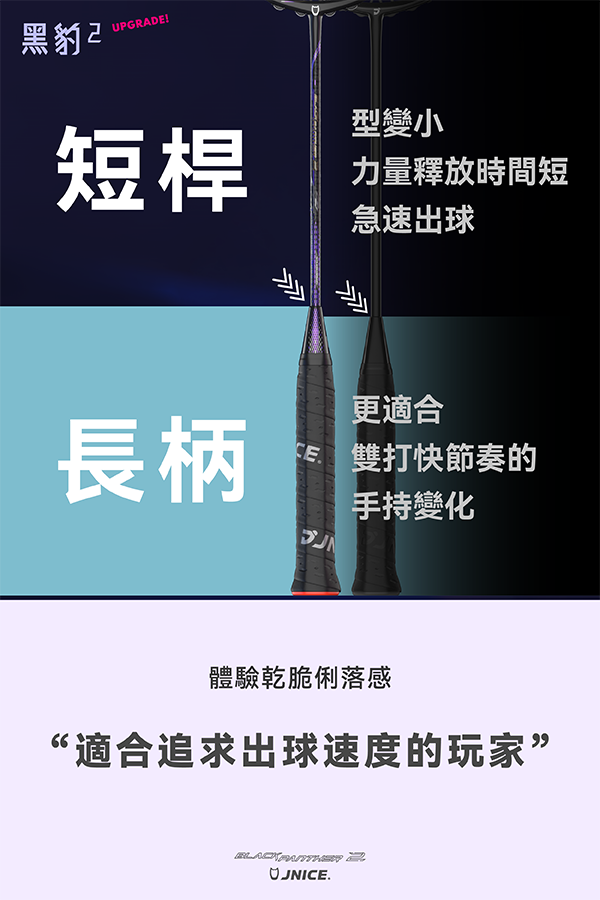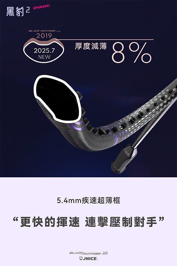 承襲這樣的優秀表現,Jnice 久奈司全新推出的黑豹二代,在結構與材質上全面升級,進一步強化攻擊爆發力與揮拍靈活度。